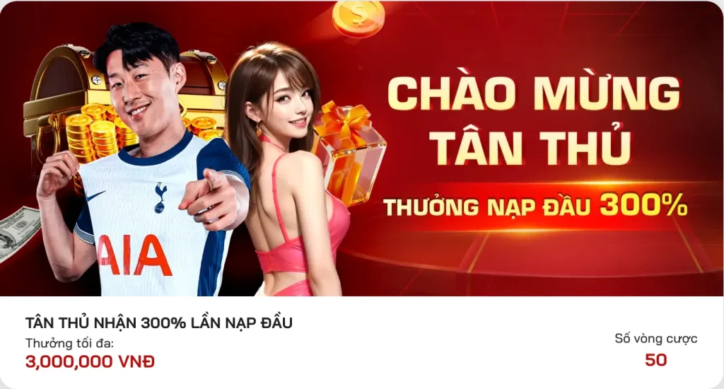 Đây là ưu đãi nhỏ nhưng cực kỳ thiết thực, đặc biệt phù hợp với những tân thủ muốn thử trước đầu tư sau. Theo đó, khi nạp tối thiểu 300.000 VND thì anh em được thưởng 100.000 VND. Khuyến mãi này chỉ áp dụng cho sản phẩm Thể Thao (trừ Volta, thể thao ảo và thể thao điện tử Saba) và Slots Nổ Hũ Techplay. Ưu điểm của chương trình là dễ tham gia, không yêu cầu quá nhiều thủ tục. Tiền gửi và tiền khuyến mãi cần trải qua 1 vòng cược mới được rút.