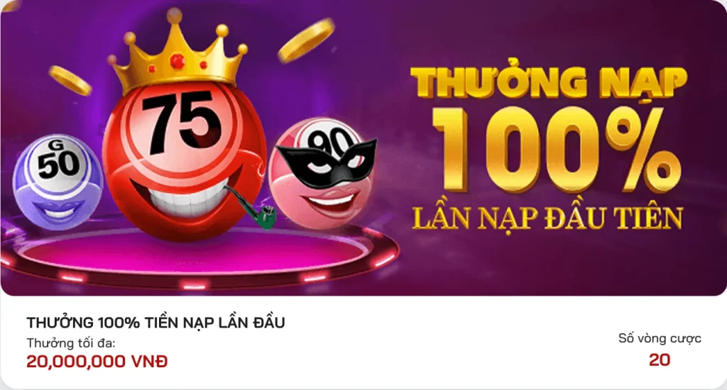 Nạp đầu thưởng 100% lên đến 20 triệu